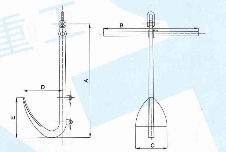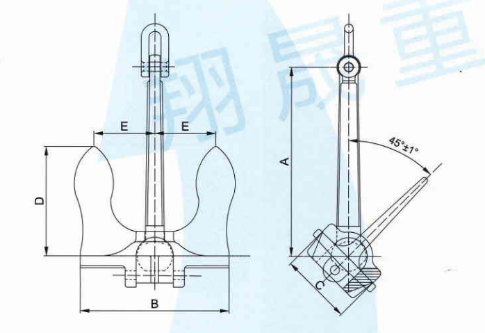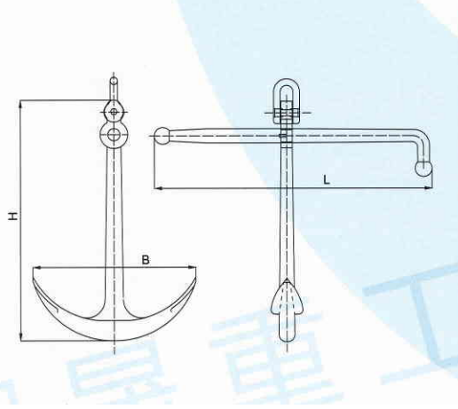 해군의 앵커는 앵커 스탠드와 앵커 클로스가 한 덩어리로 주조되어 있으며, 클로스는 회전할 수 없어 고정 클로스 앵커에 속합니다. 앵커 스탠드 상부에는 두 개의 구멍이 있는데, 위쪽 구멍은 앵커 버클에 연결되고 아래쪽 구멍은 크로스 바가 통과하도록 합니다.